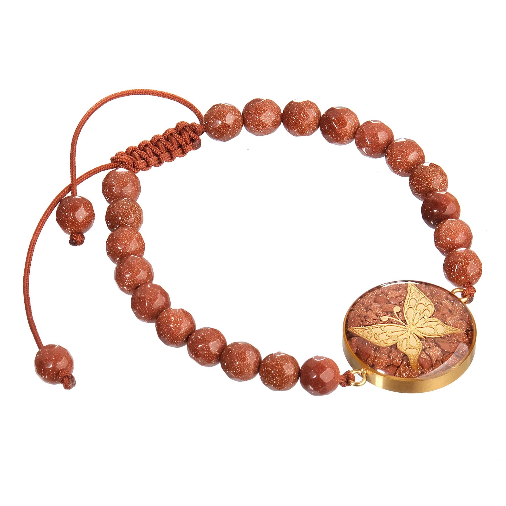 Bracelet, butterfly, 24 carat gold leaf, stainless steel, goldstone gemstone